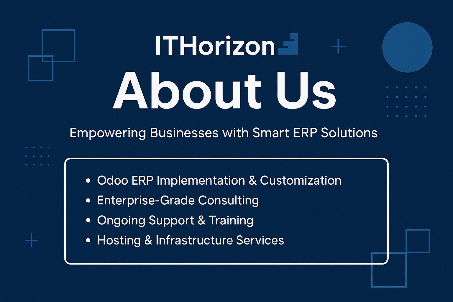 ITHorizon is a premium Odoo ERP implementation company based in Kuwait, serving businesses across the Middle East and beyond. We help companies of all sizes streamline operations, reduce costs, and scale faster by leveraging the full power of Odoo ERP software.